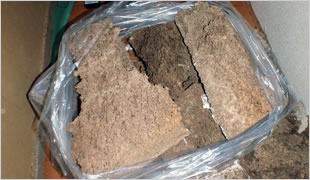 これは屋根裏に作られたイエシロアリの分巣です、分巣はシロアリの行動の拠点となる場所です。