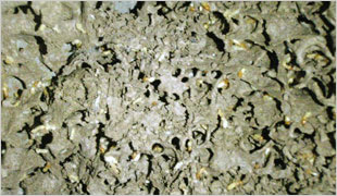 蟻道とは地下から建物へ侵入する際の通り道です。シロアリは乾燥に弱く、風や日光を嫌います。