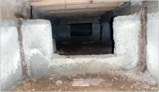 蟻道は束石、基礎、床束、大引きなどの表面に作られます。