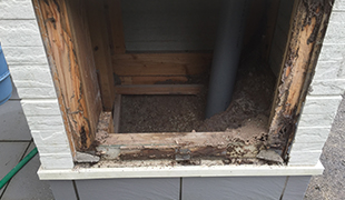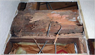 ヤマトシロアリは湿気を好むため、浴室・台所・洗面台の土台・敷居・床組など、他にも雨漏りのある所が被害をよく受けます。